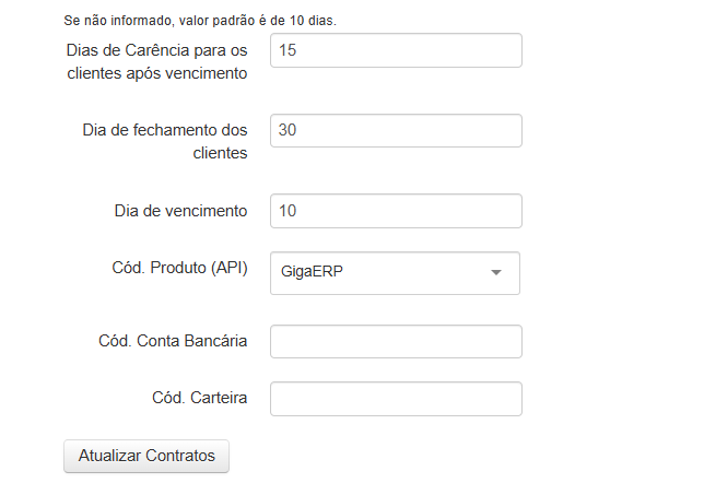 - Dias de carência para os clientes após o vencimento → quantidade de dias, além do vencimento, que se o título não for pago, ainda não será considerado inadimplente.