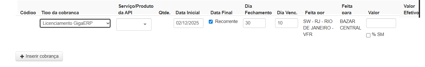 b) Acertar os dados de cobrança na Licença. Esse item é obrigatório quando houver o cadastro de uma nova licença. Os dados existentes na licença é quem determina como será feito a cobrança. Assim, quando ocorrer uma venda de um produto, ao cadastrar a licença do mesmo, a franquia deve deixar esses dados atualizados.