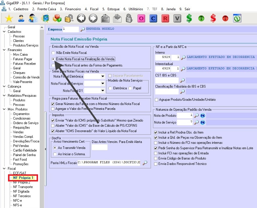 3) Parametro para emissão na finalização da venda, conforme imagem abaixo.